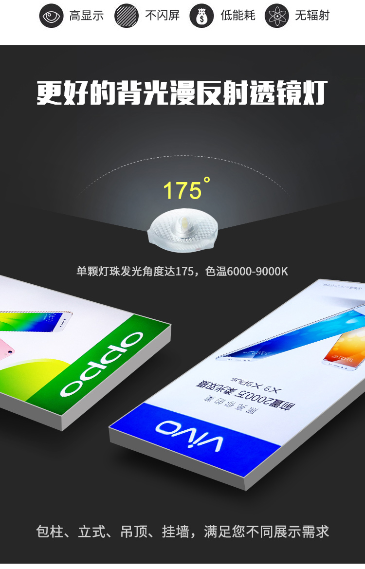 產(chǎn)品用途超薄節(jié)能燈箱主要適用范圍:廣告媒體、墻面裝飾宣傳、室內(nèi)外指示牌……